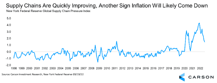 The recent CPI number was disappointing, showing prices for many goods and services at the consumer level were increasing more than expected. The good news is various other inflation measures are coming back, and quickly, in many cases. For starters, energy prices have fallen and in many cases are lower than before the war started – a good sign. Meanwhile, supply chains are improving, as this survey by the NY Fed shows.