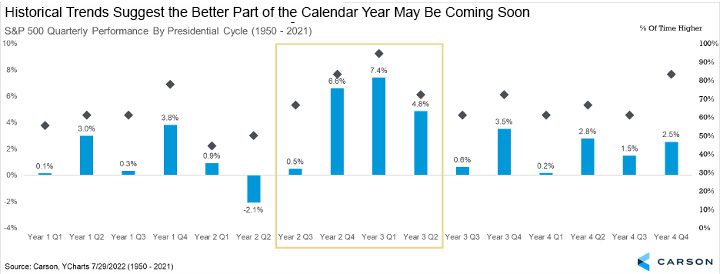 Although the size of the drop in stocks and bonds is surprising, to see some weakness this year wasn’t overly surprising. Some of the worst quarters of the four-year cycle took place during this year. The second year (so this year) under a new President tends to be quite weak as well. The good news is how well stocks historically do the following year under a new President.