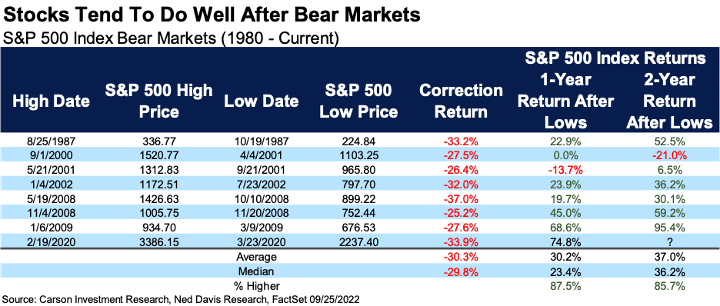 One final reason to remain optimistic and not sell now is that data shows stocks have historically tended to perform well after a midterm year low. Since 1950, the S&P 500 has gained more than 32% on average off the lows and has never been lower a year later. The June lows are not far away from current levels. Should new lows be made, it could be another positive for investors going out a year or more.