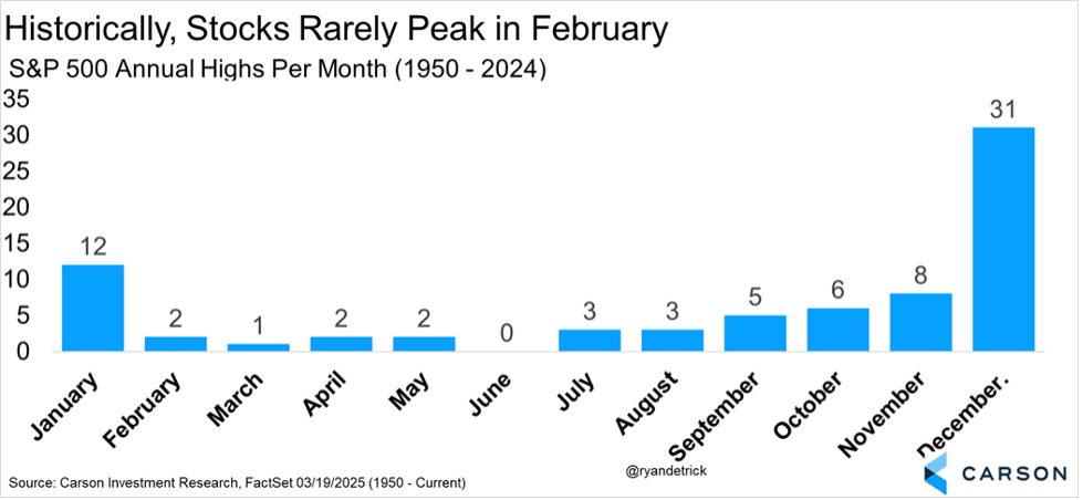Can stocks really get back to new highs before this year is over? We get it, that would take a heck of a move, but the odds aren’t perhaps as slim as many think. Should we get some good news on the trade front and the economy remains resilient, it could happen. Then toss in the fact that only twice going back 75 years has stock peaked in February, and maybe we could see a new high later this year.