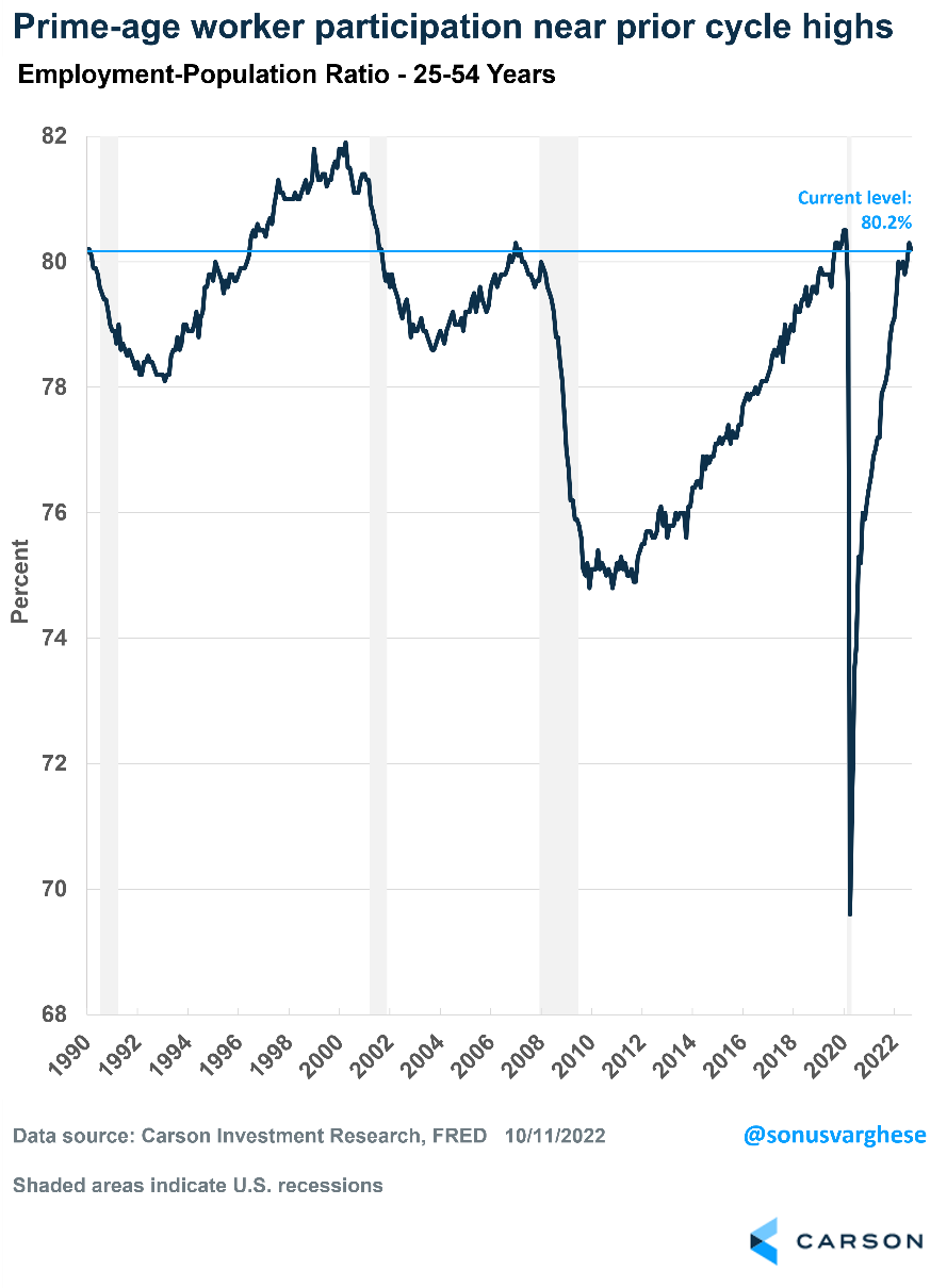 Payroll growth has certainly slowed over the last few months, from 537,000 in July to 315,000 in August and then 263,000 in September. But make no mistake: These are robust numbers, and the big picture is that 3.8 million jobs were created over the first nine months of 2022.