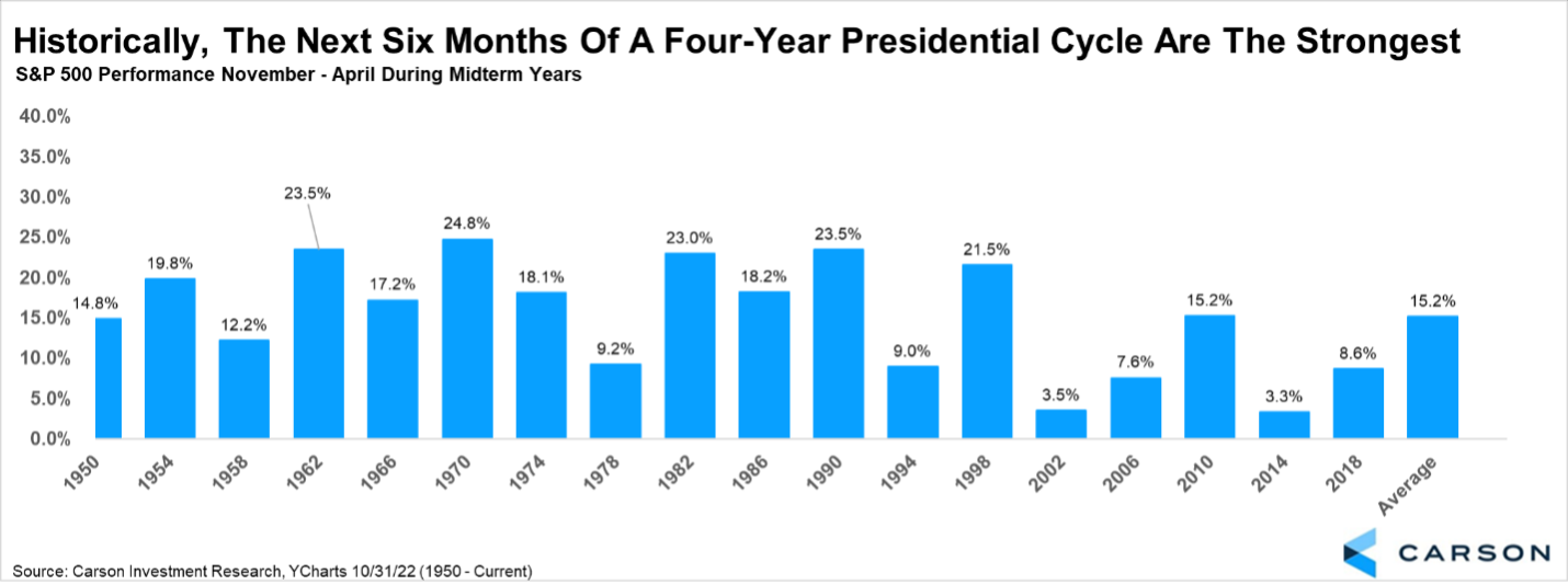 One of the most well-known investor axioms is “Sell in May and Go Away,” as those six months are some of the worst of the year. It played out this year, but what we don’t hear nearly as much about is how well stocks tend to do from November through April. Sure enough, looking at those six months during a midterm year and we find that stocks have been higher the past 18 times.