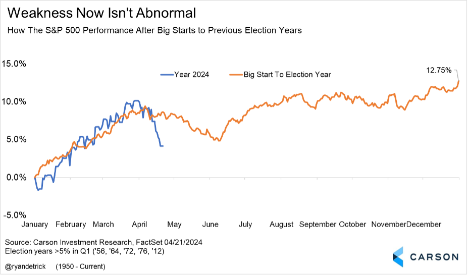 Lastly, reviewing previous election years that started strong, such as 2024, shows that choppy weakness could last until after Memorial Day, but a summer rally is also likely. So, don’t lose faith now. This is all part of the process, and we continue to expect a strong second half of the year.