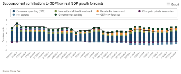 Perhaps the best way to capture the various data points is via the Atlanta Fed’s GDP Now estimate for first-quarter GDP growth, which is 2.9% and hides underlying strength. Inventories and exports are typically the most volatile parts of GDP, so excluding these indicates the pace of underlying demand in the economy (inflation-adjusted). That is above 3.5% now! For perspective, the 2010-2019 average pace was 2.4%.