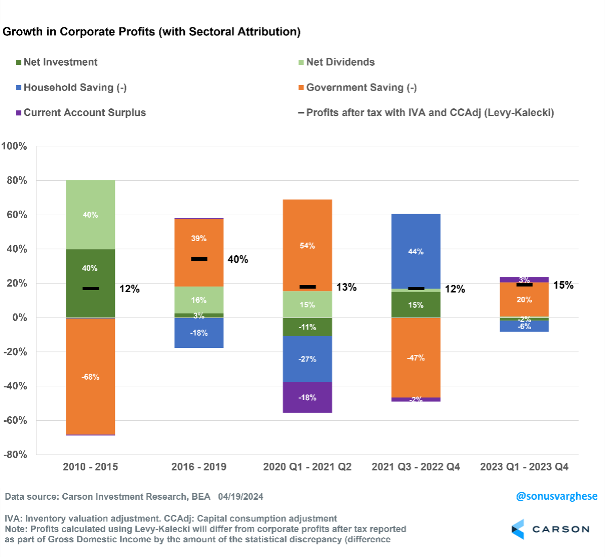 - 2023 Q1 – 2023 Q4: Profit growth was once again boosted by rising fiscal deficits, especially as interest costs rose, more than offsetting rising household savings.