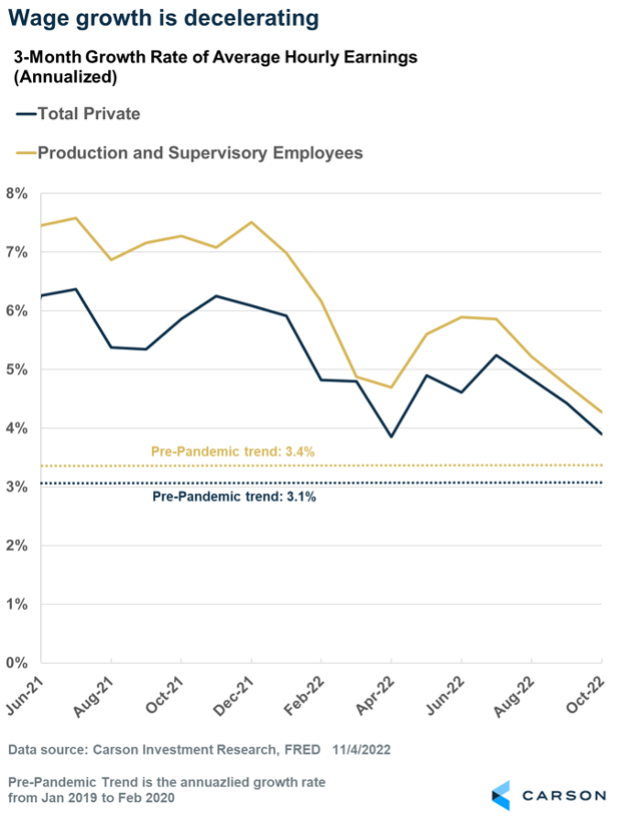 • Wage growth is slowing, and that should ease the Fed’s concerns about wages driving persistent inflation.
