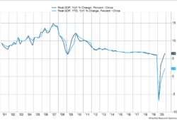 Chinese GDP grew 2.3% in 2020, making it the only major economy to grow last year. In the fourth quarter, the Chinese economy grew 6.5% as China continued to gain ground on the U.S. economy. The growth was led by strong performance in industrial production, which rose 7.3% in December, compared to a year earlier.