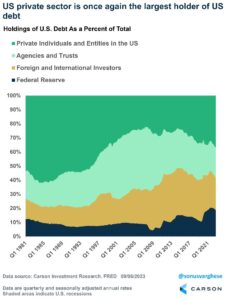 - The U.S. private sector is the largest holder of U.S. government debt, and thus the biggest beneficiary of higher rates.