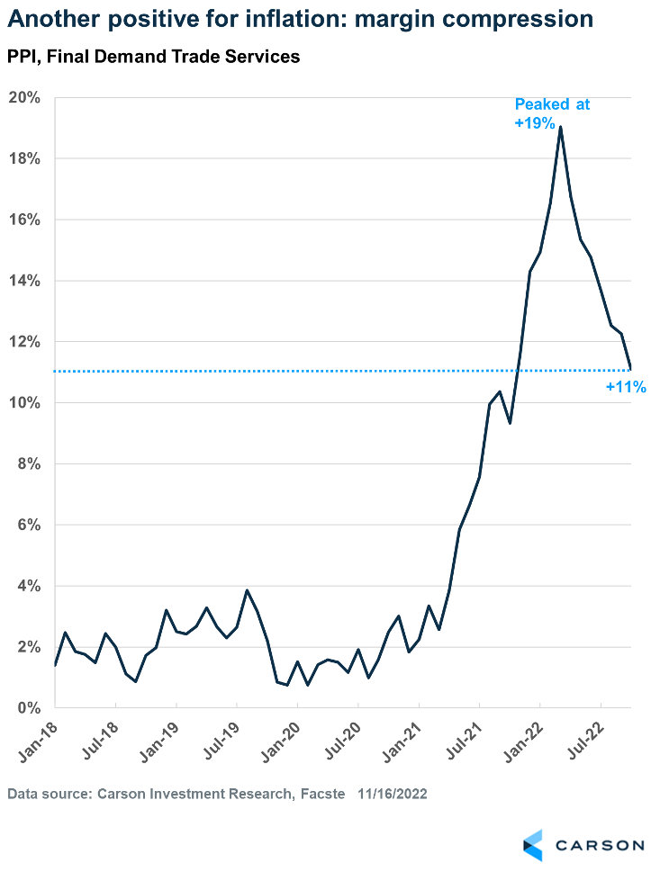 - More positive signs point to inflation peaking and rolling over.
