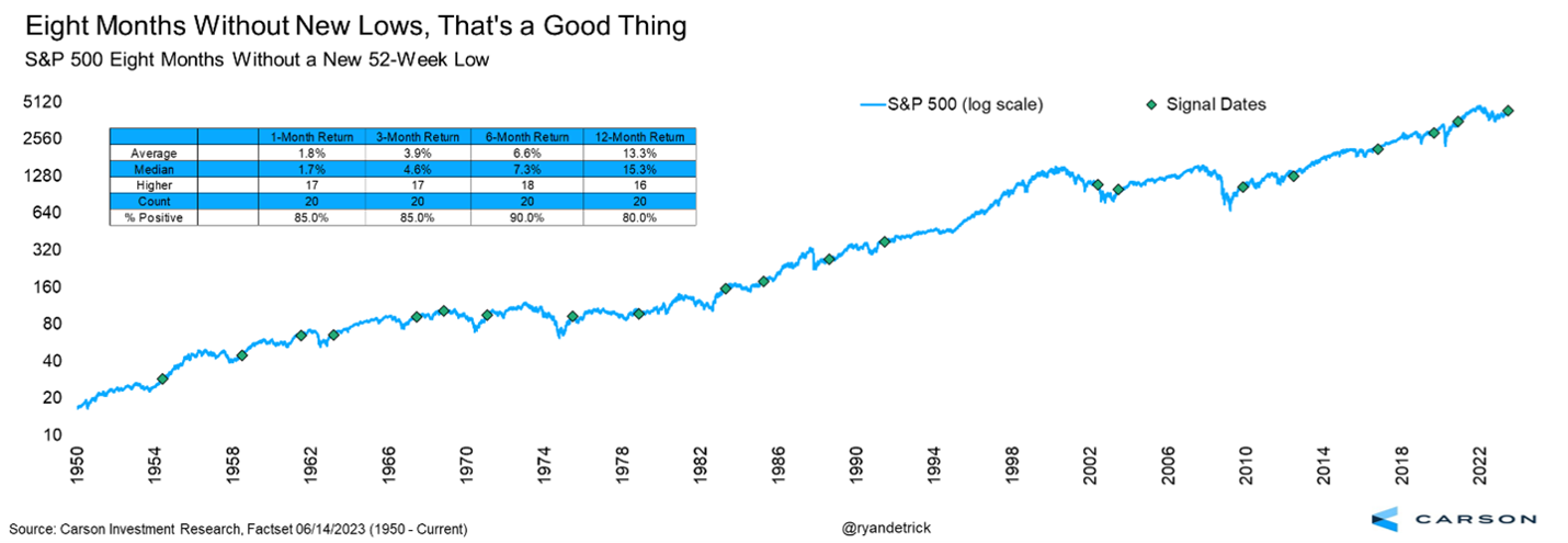 • Among several bullish signs: new 52-week highs and eight months without new lows.