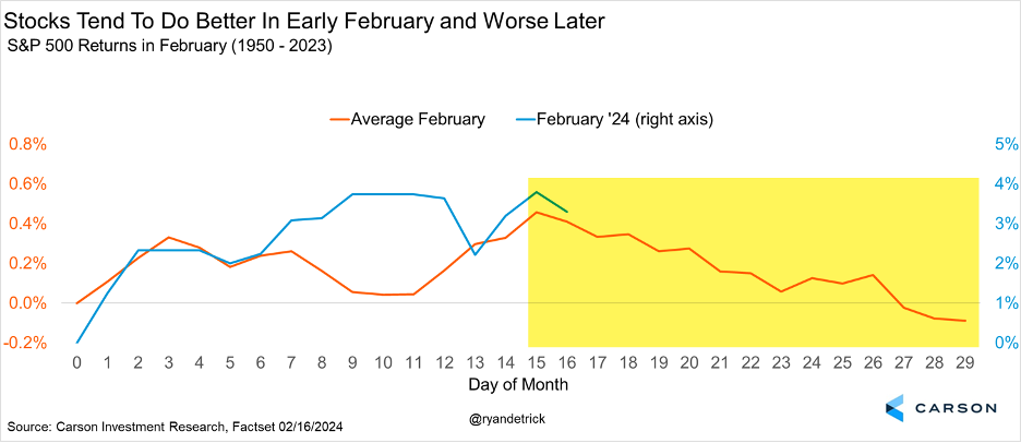 - Historically, late February into mid-March can be troublesome, which increases the odds of a break after the record run.