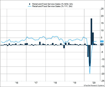 - Retail and food service sales rose 0.6% last month. A rebound in purchases at restaurants accounted for most of the increase.