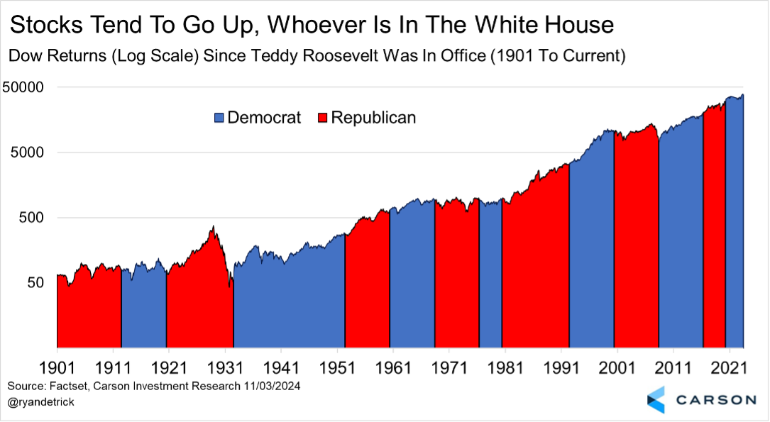I can’t tell you how many investors I’ve met over the years that didn’t invest in the stock market because of who was in the White House. A lot of people didn’t like President Obama and stocks did great. A lot of people didn’t like President Trump and stocks did really well. A lot of people didn’t like President Biden and stocks started slowly, but soared the past two years. This is obviously a bigger deal in election years and mid-term years, but it is still important to remember every year. I’ll say it one final time, don’t mix your political beliefs with your investing views.