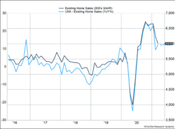 U.S housing markets continue to rally. Existing home prices rose 17.2% from last year (Figure 1). Lumber prices have gained more than 300% since the pandemic began as Americans look to increase the comfort of their homes by remodeling or moving to larger homes further removed from city centers.