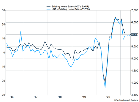 - Housing prices continue to trend higher. The median price of existing homes rose 17.2% from last year as builders wrestle with shortages in land, labor and materials.