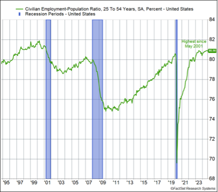 The fact that the unemployment rate and the prime-age employment population ratio are pointing in the same direction is positive. In our business, it’s about combining a lot of different information, and our life gets easier if the data are mostly telling the same story (good or bad — but fortunately, a good one now).