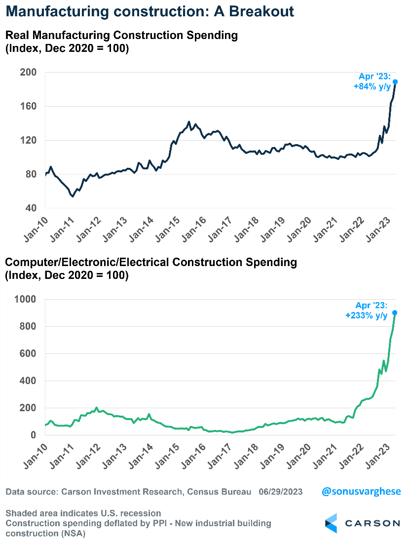 • The resurgence of manufacturing construction in the U.S. is a hugely underrated story.