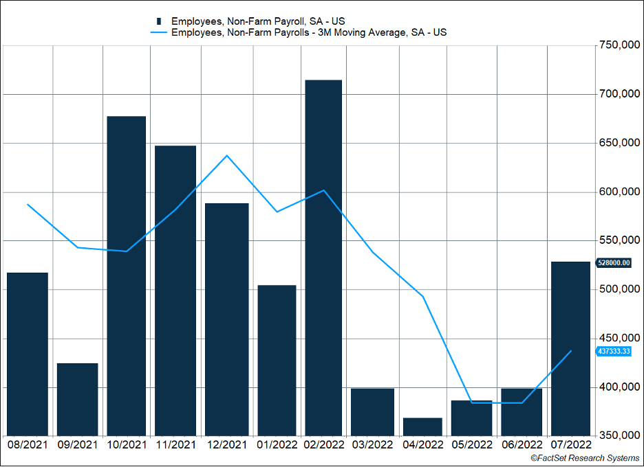 The U.S. job market didn’t get the message it was supposed to slow down. The establishment survey estimated 528,000 new jobs were created last month. Every employment sector experienced growth, although services and government hiring accounted for 87% of new jobs.
