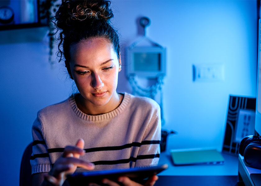 Business professional using his tablet to check his financial numbers